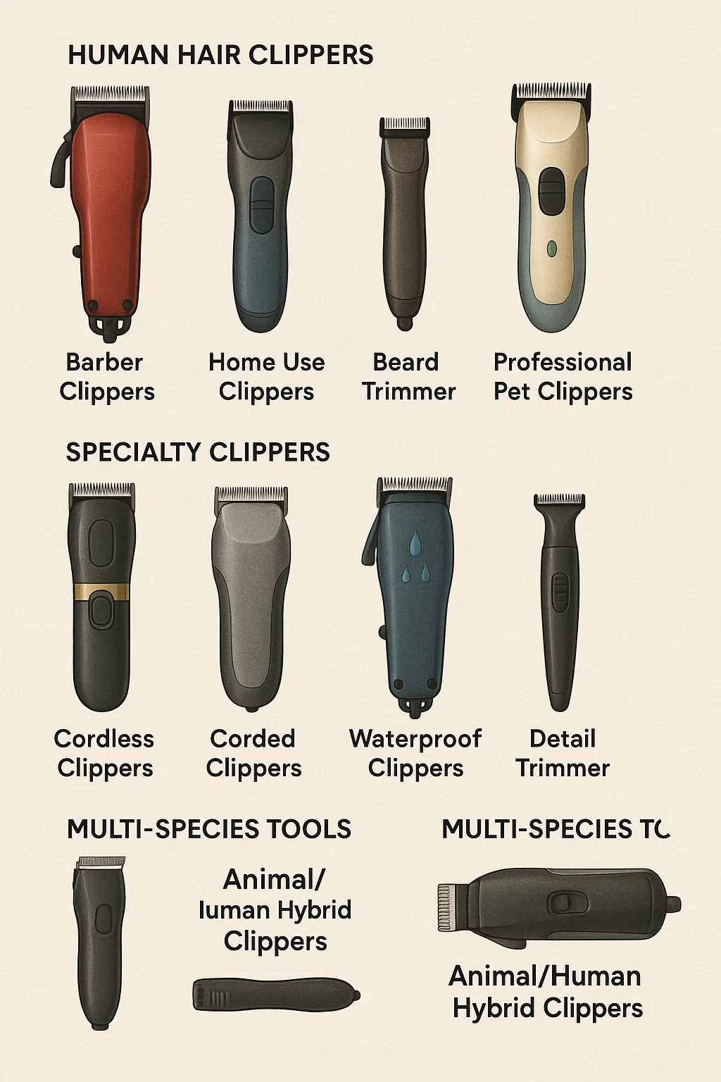 Her er hovedtypene av Hårklippere , kategorisert etter design og formål: